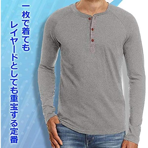 ラグラン ロンt 至上 メンズ 長袖 無地 Tシャツ カットソー ストレッチ カジュアル シンプル ライトグレー デザイン ボタン ロング Xl